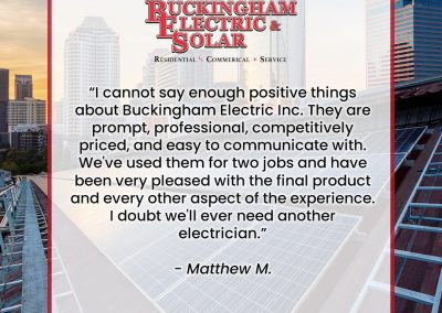 When we set out to serve the Burnsville, North Carolina area nearly 20 years ago, we knew the primary recipe for our success would be to do the job right the first time and provide superior customer service. We believe you will agree that here at Buckingham Electric Inc., we have achieved that goal and surpassed it. As a family-owned and operated electrical planning and installation company, we always put our customers’ needs first – that means using quality parts and materials, utilizing only employees instead of subcontractors, and providing 24-hour emergency service.